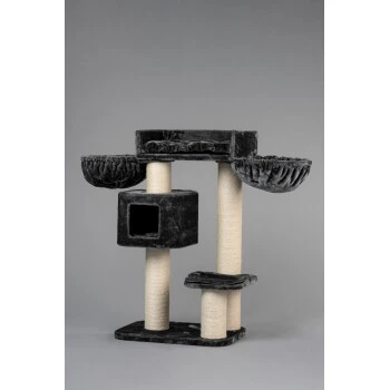 Starker Kratzbaum Devon Rex Creme mit sehr grossen Liegeplatz (60x43x15cm) mit herausnehmbaren Kissen hat sehr viel zum Spielen und zum Kratzen an der 15cmØ Dickenn Stämme.